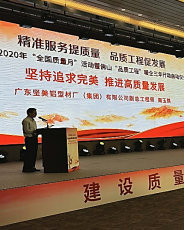 9月18日,由佛山市人民政府主办、佛山市市场监督管理局承办的2020年“全国质量月”活动暨佛山“品质工程”暖企三年行动启动仪式在佛山中欧中心举行。“坚美铝业”与“美的电器”两家企业的管理成果荣获佛山市首届质量管理成果大赛(质量文化类)一等奖。坚美副总工周玉焕作为企业代表在会上作了《坚持追求完美,推进高质量发展》主题发言。